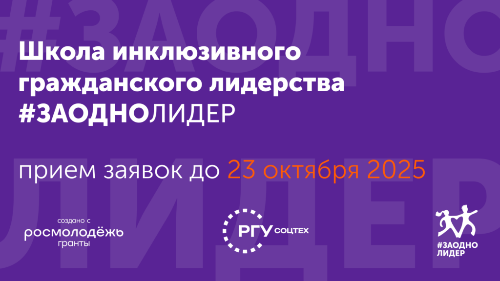В 2025 году в рамках Всероссийского молодежного движения #ЗАОДНО стартует проект “Школа инклюзивного гражданского лидерства «#ЗАОДНО Лидер”». Его цель — выявление и поддержка молодых гражданских активистов, работающих в сфере инклюзии, а также формирование нового поколения лидеров, способных выстраивать диалог между инклюзивным сообществом и обществом в целом.